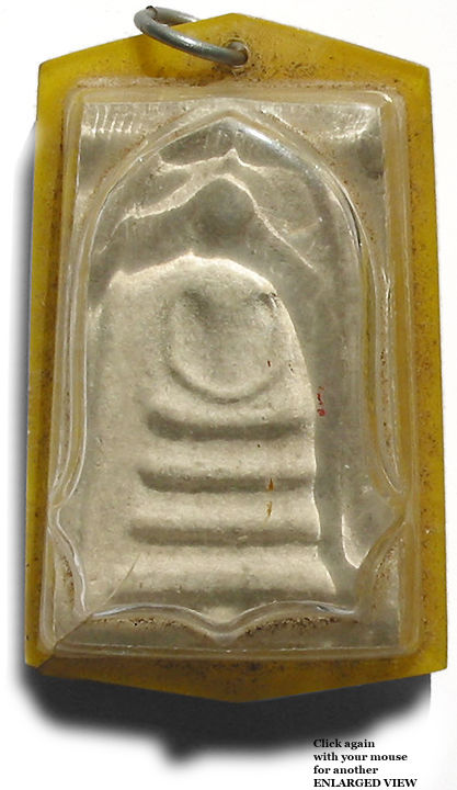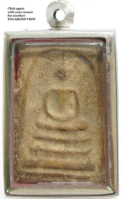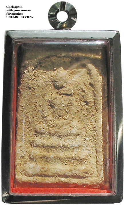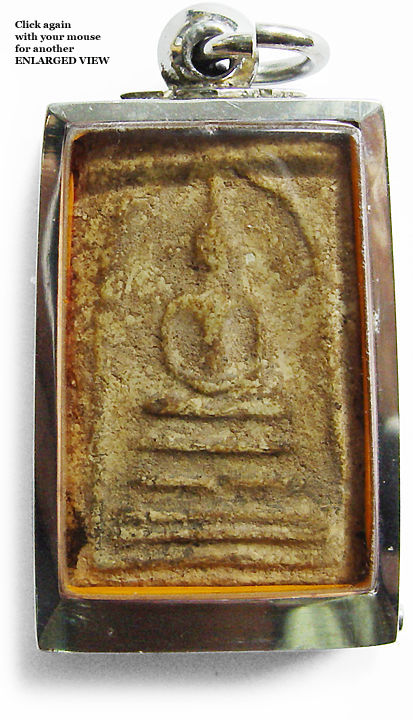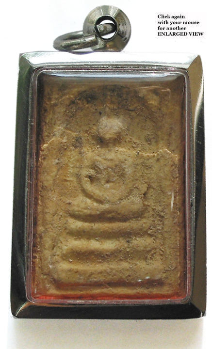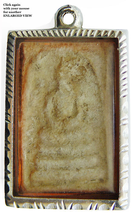 section which may serve more specifically with your objective.NOTE:- Virtually ALL the images appear in this site have two dimensions in their respective display. I think most seasoned Thai amulet lovers probably possess a pair of hawk eyes second to the Jews in the diamond trades, so, it is the intention to provide a LARGER view of each thumbnail in order for everyone to enjoy, authenticate or verify their originality. The technique to fully explore the convenience of this display system is - even when the larger view appears on the browser, you should use your mouse to click again to see the actual explosive view. Please bear with the slower download time of those explosive views. Enjoy.