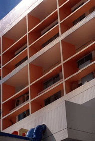 a strong nationalistic metaphor. The 'Brutalist' movement was lead largely by some prolific British architects such as the Smithsons and Goldfinger. Receiving many commissions from local councils, these architects were soon to make their mark on 'progressive' post-war housing and public buildings.The movement still placed an emphasis on functionality and form. Most of these buildings are often monolithic erections of great mass. Unlike their International style cousins, Brutalist architecture was about stretching the limits of how concrete could be shaped. This also includes the use of prefabricated building techniques. Often described as being unfriendly, cold and Teutonic; these ugly ducklings were the pets of many local urban councils and government builders. Relatively easy to construct and easy to maintain, these new buildings lacked the 'skeletal' appearance of early International style buildings. Being forged largely out of raw concrete they were often seen as a quick and easy way to construct 'lasting' buildings in the 60s. Two early attempts to bring Brutalist utilitarianism to the forefront of public service was the construction of both University Hospital in Petaling Jaya and Kuala Lumpur General Hospital. Both a product of the period when the movement was most prolific, they took on proportions that befitted their role. The Kuala Lumpur General Hospital is reminiscent of Le Corbusier's High Court building and the Secretariat offices in Chandigarh, India. The many buildings of this hospital are protected by a series of square concrete louvers allowing good ventilation, yet keeping the sun and rain out. Almost like a scarsophagus that consumes the building itself, the louvers succeed at bringing a greater degree of aesthetics compared to the grilled caged EPF building in PJ or Hotel Malaya in KL. Apart from the issue of aesthetics, the large concrete sunshades offer a greater level of fire safety compared to grilles. The hospital recently underwent a major exercise to revamp its exterior. Many bare concrete sections have since been painted bright beige. The louvers were given hints of orange or lilac to provide contrast from the main superstructure. When architects Wells and Joyce conceived this building, it was a time when it would have been hard to ignore Le Corbusier's influence on public architecture. The General Hospital in KL is probably one of the best examples of the continental European approach to the Brutalist movement. Based more closely on the concepts of International style; Le Corbusier and his other Bauhaus colleagues' still exercised restraint during the period following from the 50s. When University Hospital in Petaling Jaya was completed, it probably represents the closest we have come to the British flavour of the Brutalist movement. A product of the mid-60s, it represents the epitome of what British architects were trying to achieve in the 60s. Pushing the limits of concrete construction; the hospital resembles the stereotypical image of what Brutalism is all about. Looking at the main tower block that faces the main road; the reliefs on the bare concrete exterior is almost akin to the exterior of Erno Goldfinger's urban monstrosity, Trellick Tower, which is located in the now trendy Notting Hill area of London. Often thought to be one of the ugliest buildings in London, it recently received a new lease of life as a relic from the dark ages to the epitome of urban modernism. It is now a heritage listed building. Conceived by James Cubitt and Partners, the architects succeeded in using concrete to create a lasting visual impact on any visitor. Entering the hospital from any direction, the kinked concrete roof of the main tower block is bound to catch your eye. The exterior is bold, uncomplicated yet intricate. Another prime example of Brutalist architecture in KL is the Australian High Commission building located a stones throw away from the Petronas Twin Towers. Designed by architects, Joyce Nankivell Associates and Leong Thian dan Rakan-rakan, it is probably one of the best examples of Brutalist non-commercial office space. Despite the imposing bold concrete buttresses and columns, the building admits a fair amount of sunlight into the interior while maintaining a comfortable working environment. Completed in 1978, it's probably one of the last buildings that epitomised this style of "modern" construction. One of these early attempts was the Tunku Abdul Rahman flats located along Jalan Pahang. Made entirely of prefabricated concrete, these flats were supposed to address the problems of public housing. The use of prefabricated tower blocks in England didn't go down well with local residents, especially after an explosion at Ronan Point raised concerns over the structural integrity of such instant erections. The use of prefabricated construction was also largely unpopular in KL and subsequently went out of vogue especially since it provided relatively little cost savings compared to traditional construction. Later attempts as using pre-fabricated construction re-ignited in the 80s then went underground again. Originally bare concrete, a recent coat of paint has mellowed the Tunku Abdul Rahman Flats; giving them a more welcoming appearance.Since this article was written, the Tunku Abdul Rahmah Flats are due for demolition. The visual strength that Brutalist style conveys also comes though in structural strength. The use of high grade reinforced concrete for the superstructure also means these buildings are also structurally very hardy. Other styling elements including buttresses and supporting columns, enhance their durability even further. A visit to the now damage structure of the Dewan Tunku Chancellor at University Malaya revealed how well the building survived the fire. Apart from the roofing and damaged to fixtures and glass, the main structure is probably as strong as the day it was built. The massive concrete structure is otherwise untouched and resto