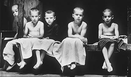 After being awakened by their spiritual teacher,the boys here ages,8 to 10, sat in their bunks and were surprised that they had an overnight visitor (me in a sleeping bag)