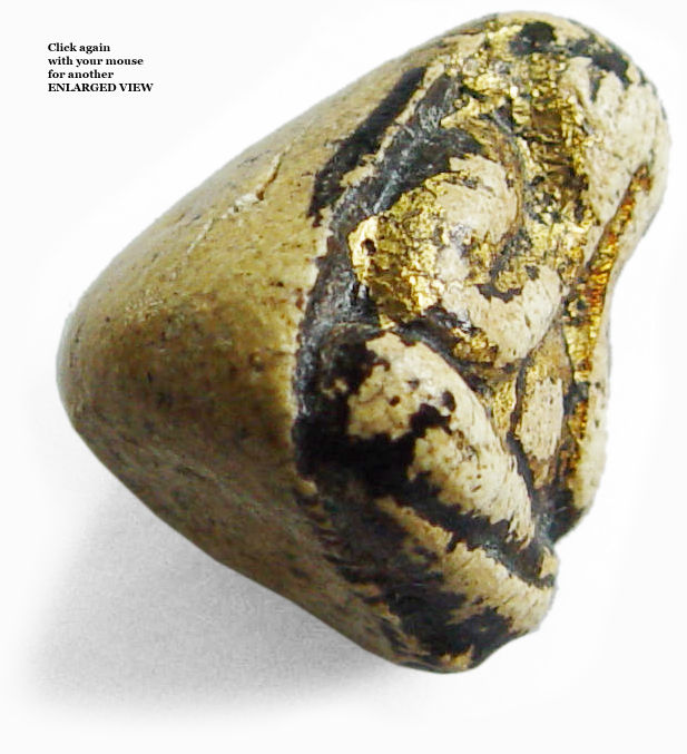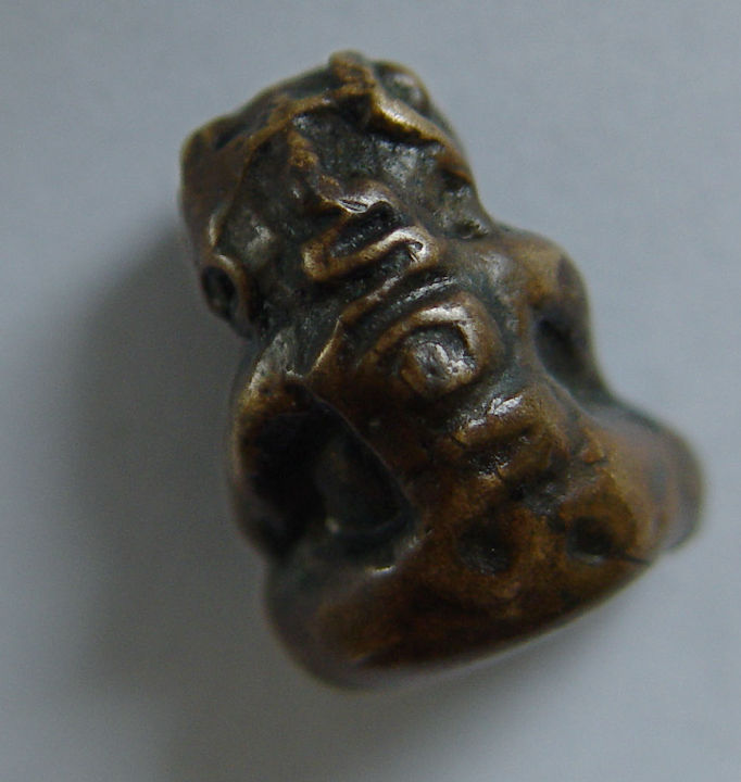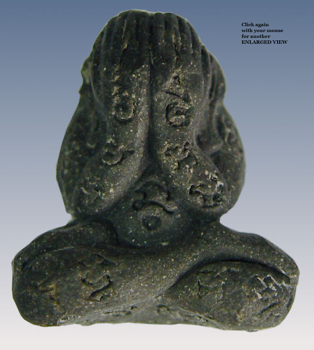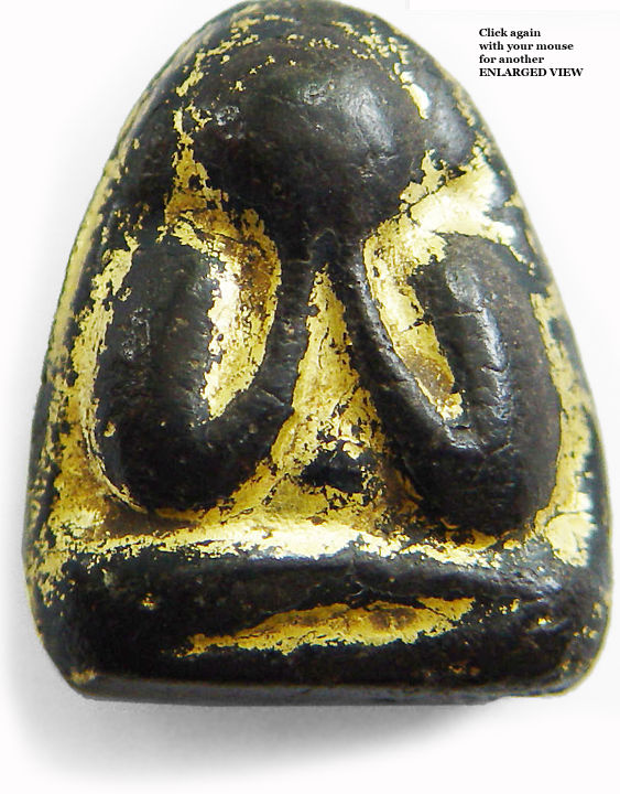 The interesting image from Wat Krawan, Chunburi has a tiny ball encased inside oddly shaped rear section of its body. Anyway, if anyone of you have any of the differing versions from these displayed here, you can send in yours to beef up the content of this site. Credit: My partners Mr. Paul Lim. Far left image is my personal collection while the one appears on the main page of this site belongs to my Thai friend.Large (Far Left) (109k) Large (center) (108k) Rear Section)(25k)