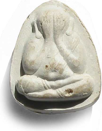 One of the most distinctive-looking tablet among all available Thai votive images is Phra Pitta or simply as "Pitta". It can easily be recognized as the image has a round structure with his pair of hand covering the face which could misled many to believe it was a ritual image rather than a formal religious image that relates to Buddhism. However, the origin of this was believed to be a form of evolution through the transformation of the God of Fortune, or Sangajayana - popularly referred to as "Sangaja" by some locals. Phra Pitta has many forms, sizes and even the choice of materials in producing this image. Older versions may be produced with the combination of either holy powder (probably the most common types of material used) or with metals such as silver, iron and in some cases, ivory-tusk or wood.