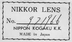 From approx. #193000 the back plate is mounted with 5 slot screws in stead of three slot screws. No lenses have been found with serial numbers from approx. 216000 up to 219999. The last lens known with the ‘Nippon Kogaku Japan’ inscription is #215731. All lenses with serial numbers over 220001 (produced from August 1 971) bear the inscription ‘Nikon’ instead. ‘No.’ before the serial number disappears. During its production, which terminated mid 1972, Nikon changed the text on the name ring and the optical formula. Last known serial number - confirmed by the factory -: 240533. Thus a total production of approx. 51,500 lenses in 5 years, although however, as stated before, many name rings with numbers in the 230,000-range were distributed for repair.