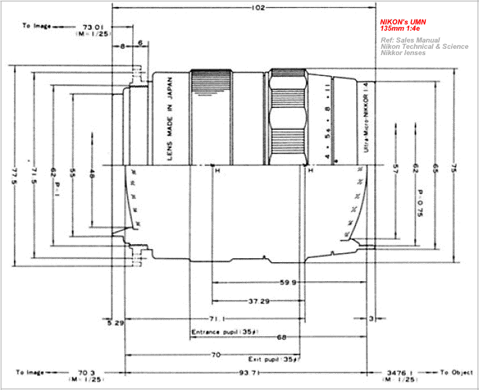 Nippon Kogaku Japan, Ultra-Micro-NIKKOR 1:4 f=135mm e-line type